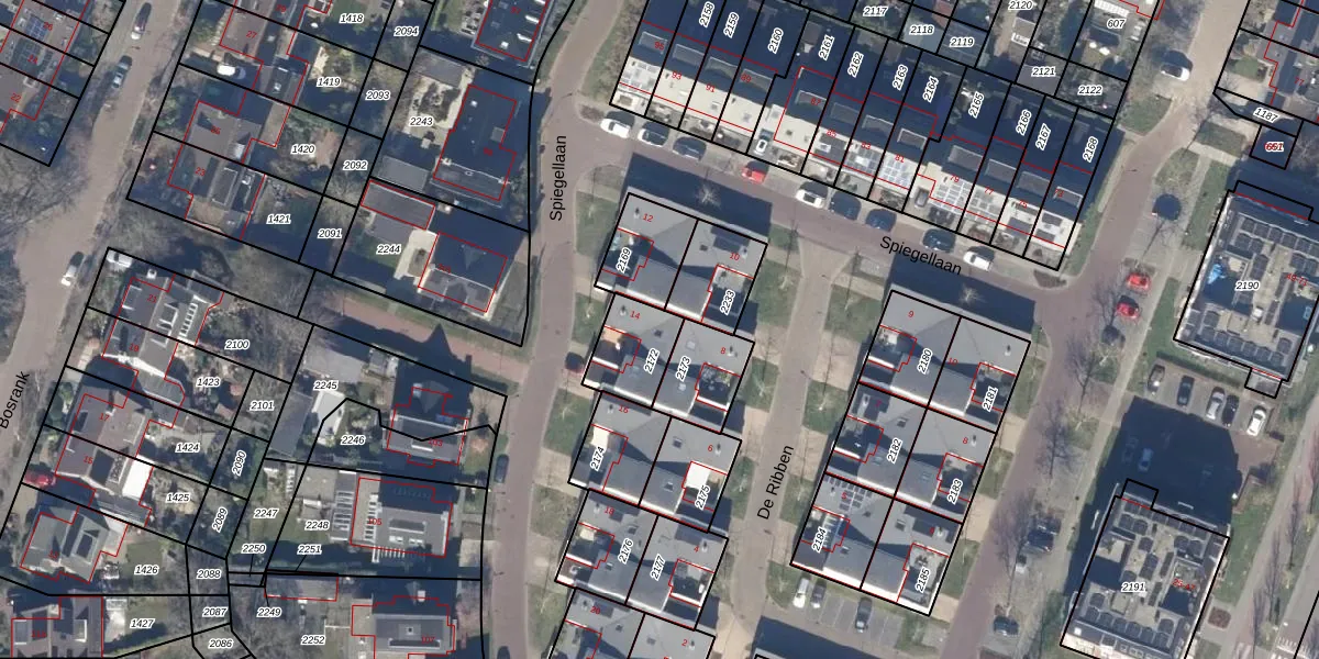 Het perceel waarop Spiegellaan 14 staat heeft een oppervlakte van 165 m². Dit is een middelgroot perceel. De perceeloppervlakte wordt geregistreerd door het Kadaster. Gedetailleerde informatie over de maten van dit perceel kunt u vinden in het rapport Kadastrale kaart met maatvoering van Spiegellaan 14.