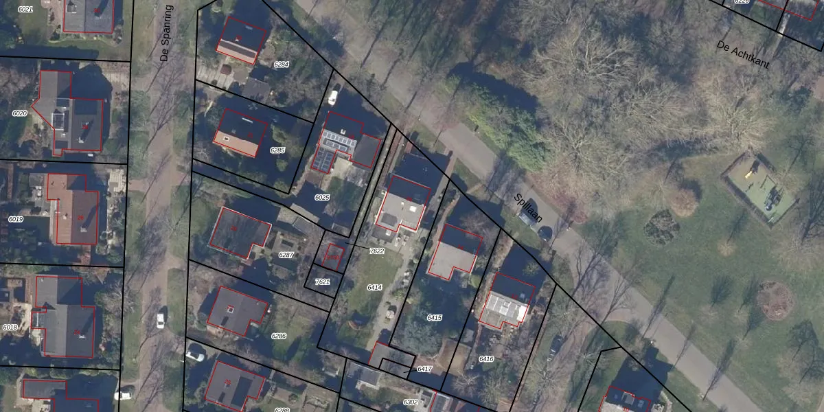 Het perceel waarop Spillaan 16 staat heeft een oppervlakte van 877 m². Dit is een groot perceel. De perceeloppervlakte wordt geregistreerd door het Kadaster. Gedetailleerde informatie over de maten van dit perceel kunt u vinden in het rapport Kadastrale kaart met maatvoering van Spillaan 16.