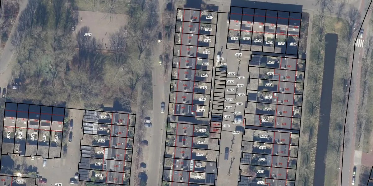 Termijen 165 is gelegen op kadastraal perceel HLO00F1654. Deze kadastrale aanduiding is uniek en wordt gebruikt door het Kadaster om eigendomsrechten en andere zakelijke rechten vast te leggen. Het perceel maakt onderdeel uit van de kadastrale gemeente Heiloo.