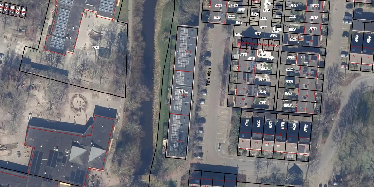 Het perceel waarop Termijen 77 staat heeft een oppervlakte van 774 m². Dit is een groot perceel. De perceeloppervlakte wordt geregistreerd door het Kadaster. Gedetailleerde informatie over de maten van dit perceel kunt u vinden in het rapport Kadastrale kaart met maatvoering van Termijen 77.