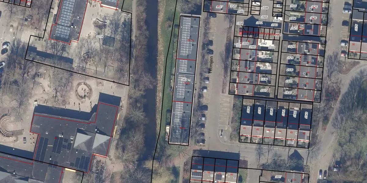 Het perceel waarop Termijen 78 staat heeft een oppervlakte van 774 m². Dit is een groot perceel. De perceeloppervlakte wordt geregistreerd door het Kadaster. Gedetailleerde informatie over de maten van dit perceel kunt u vinden in het rapport Kadastrale kaart met maatvoering van Termijen 78.