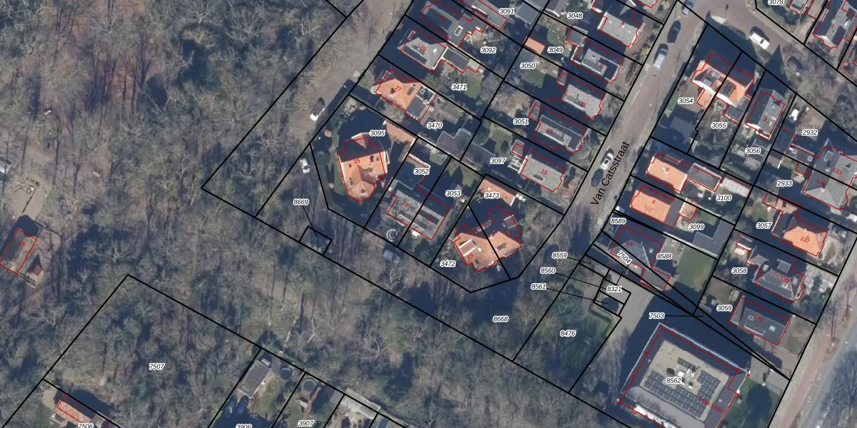 Van Catsstraat 21 is gelegen op kadastraal perceel HLO00A3053. Deze kadastrale aanduiding is uniek en wordt gebruikt door het Kadaster om eigendomsrechten en andere zakelijke rechten vast te leggen. Het perceel maakt onderdeel uit van de kadastrale gemeente Heiloo.