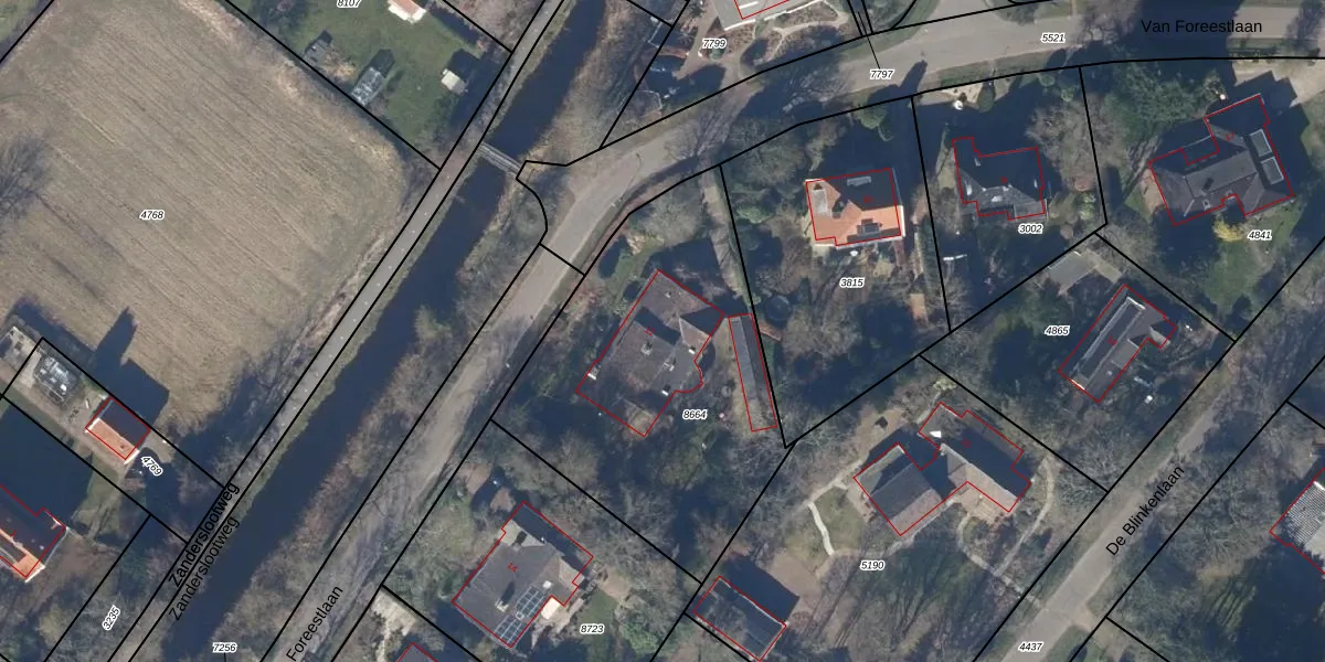 Het perceel waarop Van Foreestlaan 12 staat heeft een oppervlakte van 1575 m². Dit is een zeer groot perceel. De perceeloppervlakte wordt geregistreerd door het Kadaster. Gedetailleerde informatie over de maten van dit perceel kunt u vinden in het rapport Kadastrale kaart met maatvoering van Van Foreestlaan 12.