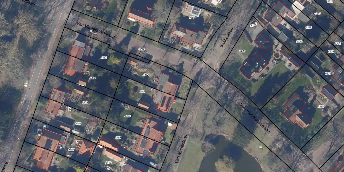 Het perceel waarop Van Merlenlaan 1 staat heeft een oppervlakte van 537 m². Dit is een groot perceel. De perceeloppervlakte wordt geregistreerd door het Kadaster. Gedetailleerde informatie over de maten van dit perceel kunt u vinden in het rapport Kadastrale kaart met maatvoering van Van Merlenlaan 1.