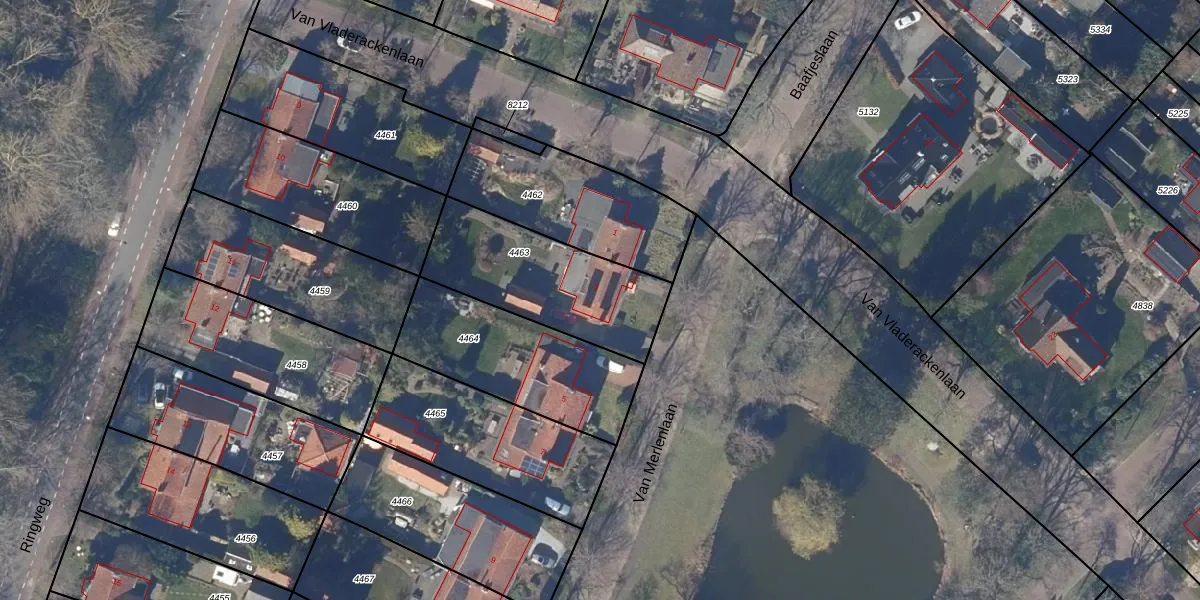 Van Merlenlaan 3 is gelegen op kadastraal perceel HLO00A4463. Deze kadastrale aanduiding is uniek en wordt gebruikt door het Kadaster om eigendomsrechten en andere zakelijke rechten vast te leggen. Het perceel maakt onderdeel uit van de kadastrale gemeente Heiloo.