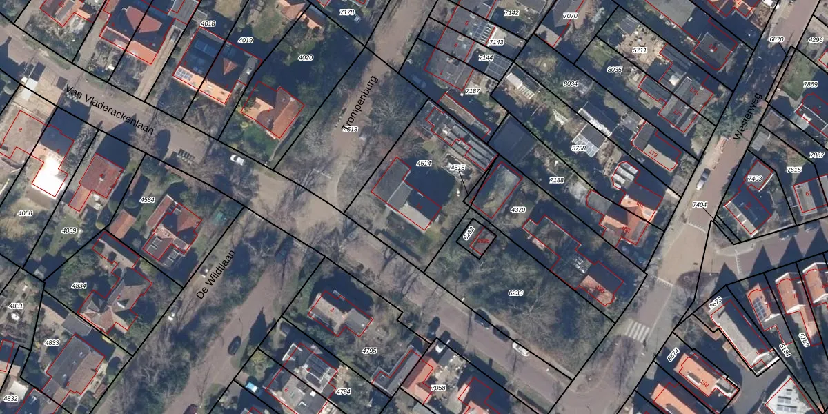 Het perceel waarop Van Vladerackenlaan 1-a staat heeft een oppervlakte van 800 m². Dit is een groot perceel. De perceeloppervlakte wordt geregistreerd door het Kadaster. Gedetailleerde informatie over de maten van dit perceel kunt u vinden in het rapport Kadastrale kaart met maatvoering van Van Vladerackenlaan 1-a.