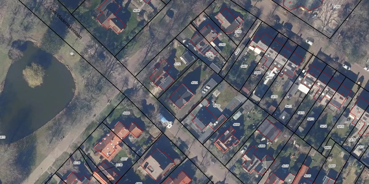Van Vladerackenlaan 19 is gelegen op kadastraal perceel HLO00A4501. Deze kadastrale aanduiding is uniek en wordt gebruikt door het Kadaster om eigendomsrechten en andere zakelijke rechten vast te leggen. Het perceel maakt onderdeel uit van de kadastrale gemeente Heiloo.