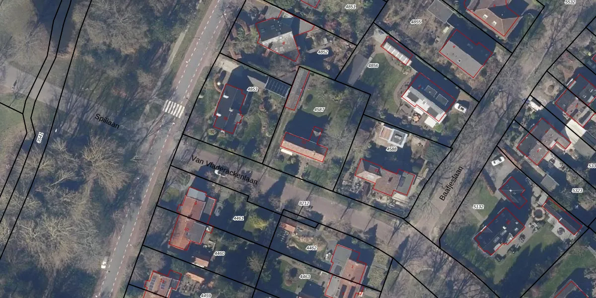 Het perceel waarop Van Vladerackenlaan 33 staat heeft een oppervlakte van 902 m². Dit is een groot perceel. De perceeloppervlakte wordt geregistreerd door het Kadaster. Gedetailleerde informatie over de maten van dit perceel kunt u vinden in het rapport Kadastrale kaart met maatvoering van Van Vladerackenlaan 33.