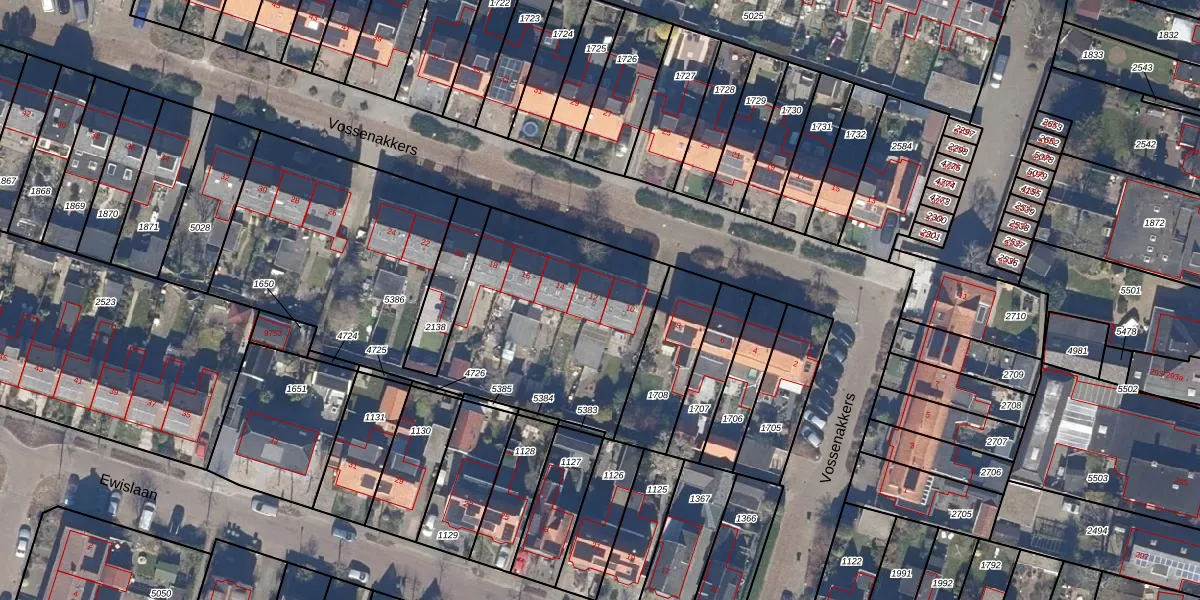 Het perceel waarop Vossenakkers 12 staat heeft een oppervlakte van 2001 m². Dit is een zeer groot perceel. De perceeloppervlakte wordt geregistreerd door het Kadaster. Gedetailleerde informatie over de maten van dit perceel kunt u vinden in het rapport Kadastrale kaart met maatvoering van Vossenakkers 12.