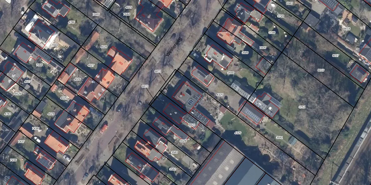 Het perceel waarop Westerweg 186 staat heeft een oppervlakte van 1403 m². Dit is een zeer groot perceel. De perceeloppervlakte wordt geregistreerd door het Kadaster. Gedetailleerde informatie over de maten van dit perceel kunt u vinden in het rapport Kadastrale kaart met maatvoering van Westerweg 186.