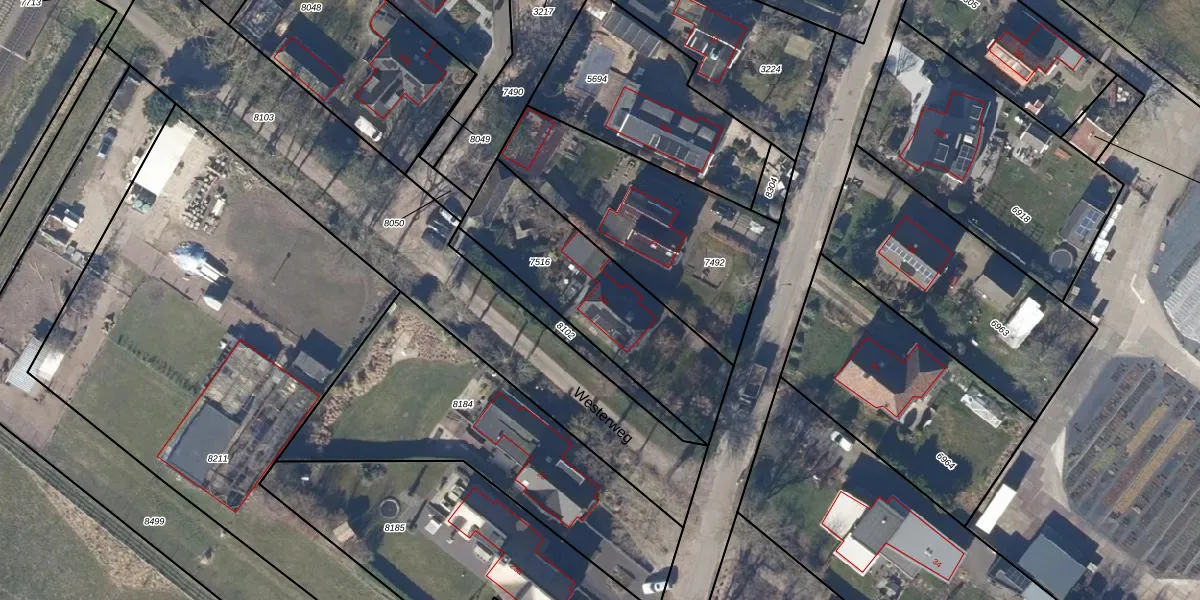 Gebruik de zoekbalk of klik op een perceel voor informatie over de adressen binnen dit perceel.