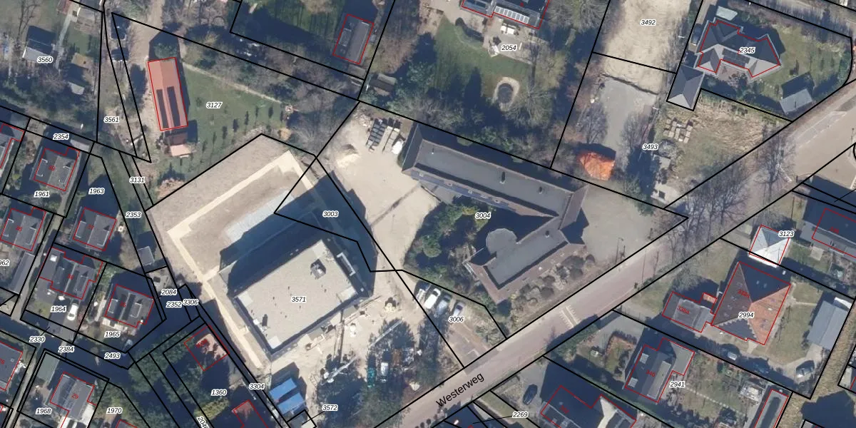 Westerweg 385-e is gelegen op kadastraal perceel HLO00E3004. Deze kadastrale aanduiding is uniek en wordt gebruikt door het Kadaster om eigendomsrechten en andere zakelijke rechten vast te leggen. Het perceel maakt onderdeel uit van de kadastrale gemeente Heiloo.