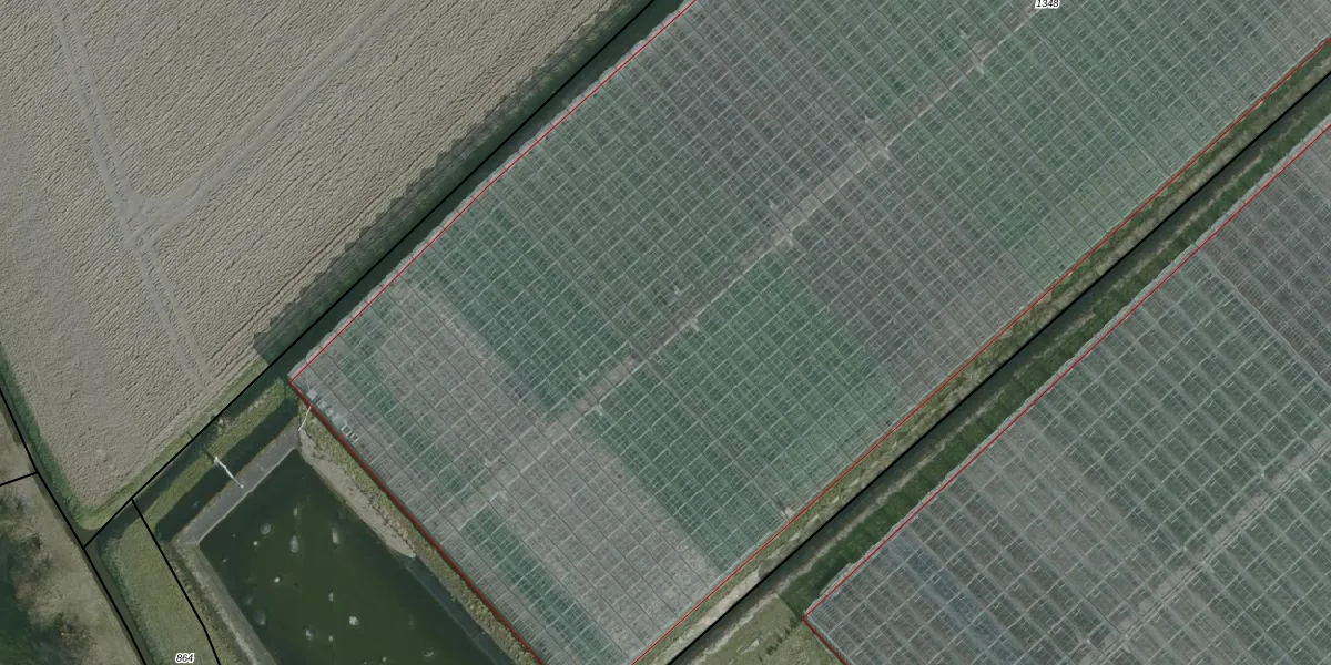 Het perceel waarop Oosteinde 1-B staat heeft een oppervlakte van 2,0 ha. Dit is een zeer groot perceel. De perceeloppervlakte wordt geregistreerd door het Kadaster. Gedetailleerde informatie over de maten van dit perceel kunt u vinden in het rapport Kadastrale kaart met maatvoering van Oosteinde 1-B.