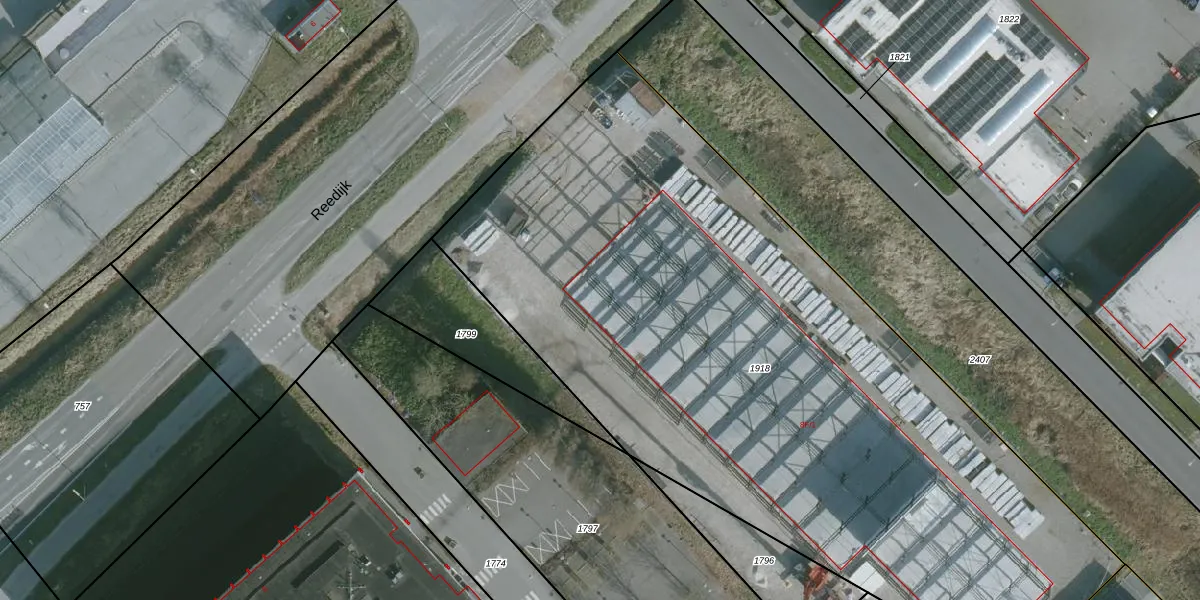 Het perceel waarop Reedijk 8-F-1 staat heeft een oppervlakte van 4773 m². Dit is een zeer groot perceel. De perceeloppervlakte wordt geregistreerd door het Kadaster. Gedetailleerde informatie over de maten van dit perceel kunt u vinden in het rapport Kadastrale kaart met maatvoering van Reedijk 8-F-1.