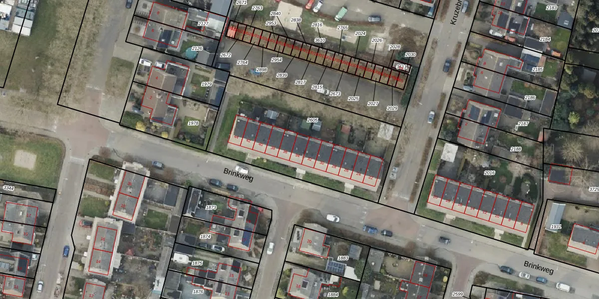 Het perceel waarop Brinkweg 34 staat heeft een oppervlakte van 1591 m². Dit is een zeer groot perceel. De perceeloppervlakte wordt geregistreerd door het Kadaster. Gedetailleerde informatie over de maten van dit perceel kunt u vinden in het rapport Kadastrale kaart met maatvoering van Brinkweg 34.