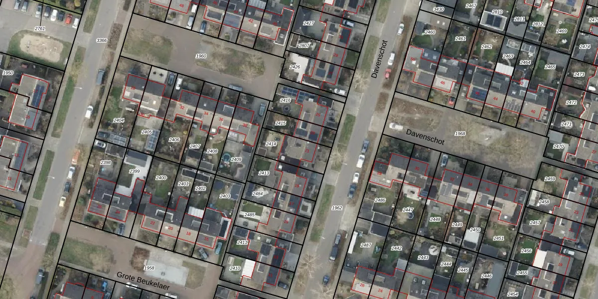 Het perceel waarop Davenschot 21 staat heeft een oppervlakte van 226 m². Dit is een middelgroot perceel. De perceeloppervlakte wordt geregistreerd door het Kadaster. Gedetailleerde informatie over de maten van dit perceel kunt u vinden in het rapport Kadastrale kaart met maatvoering van Davenschot 21.