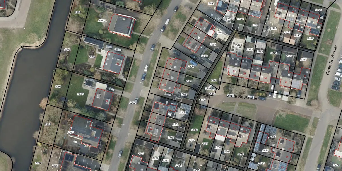 Gebruik de zoekbalk of klik op een perceel voor informatie over de adressen binnen dit perceel.