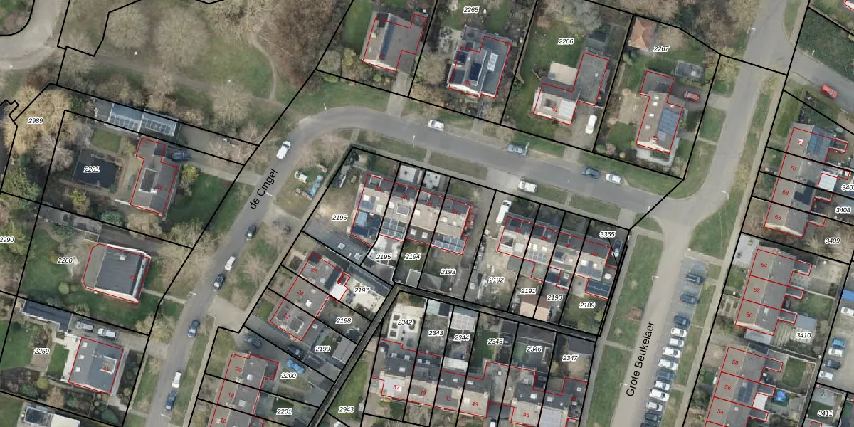 Gebruik de zoekbalk of klik op een perceel voor informatie over de adressen binnen dit perceel.