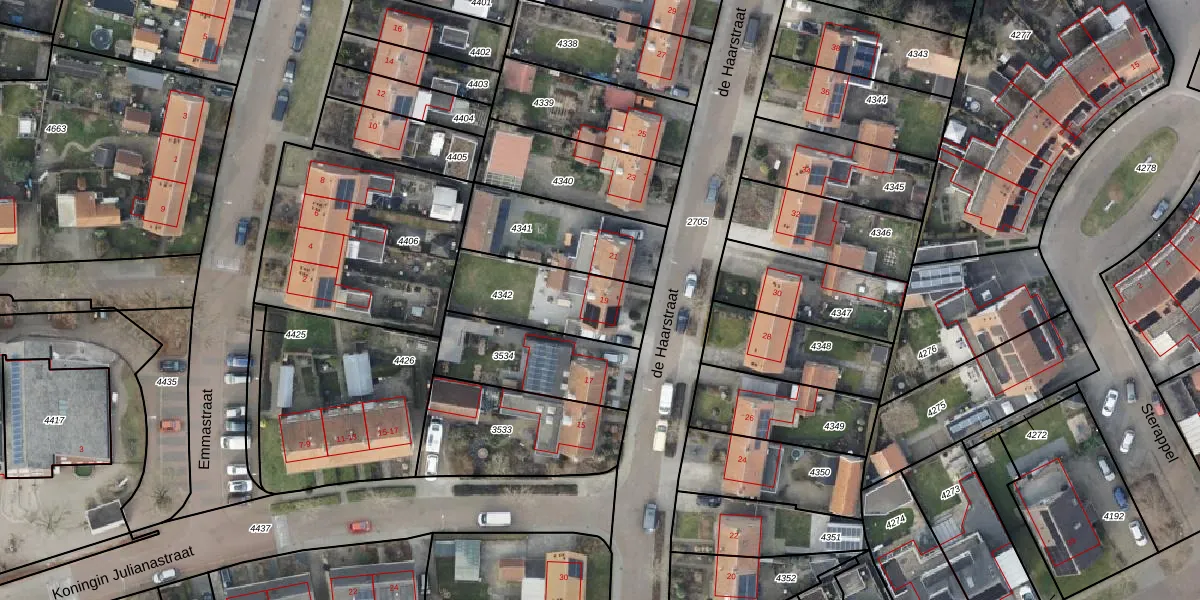 Gebruik de zoekbalk of klik op een perceel voor informatie over de adressen binnen dit perceel.