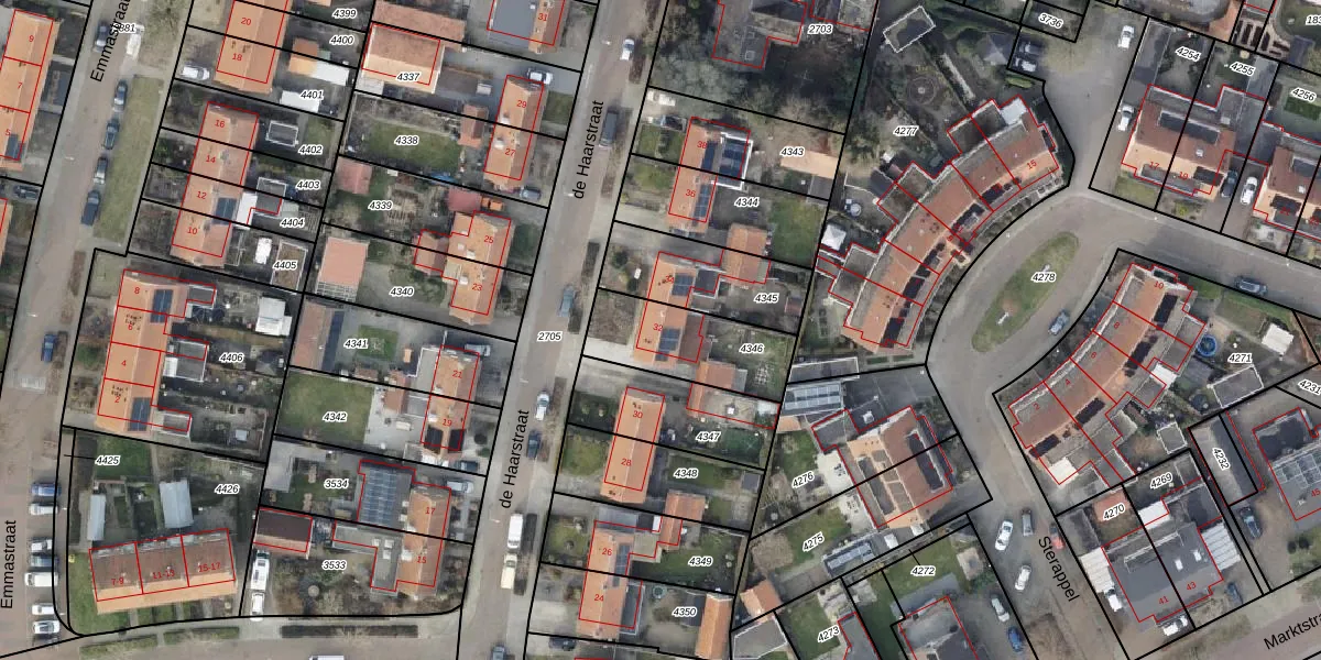 Gebruik de zoekbalk of klik op een perceel voor informatie over de adressen binnen dit perceel.