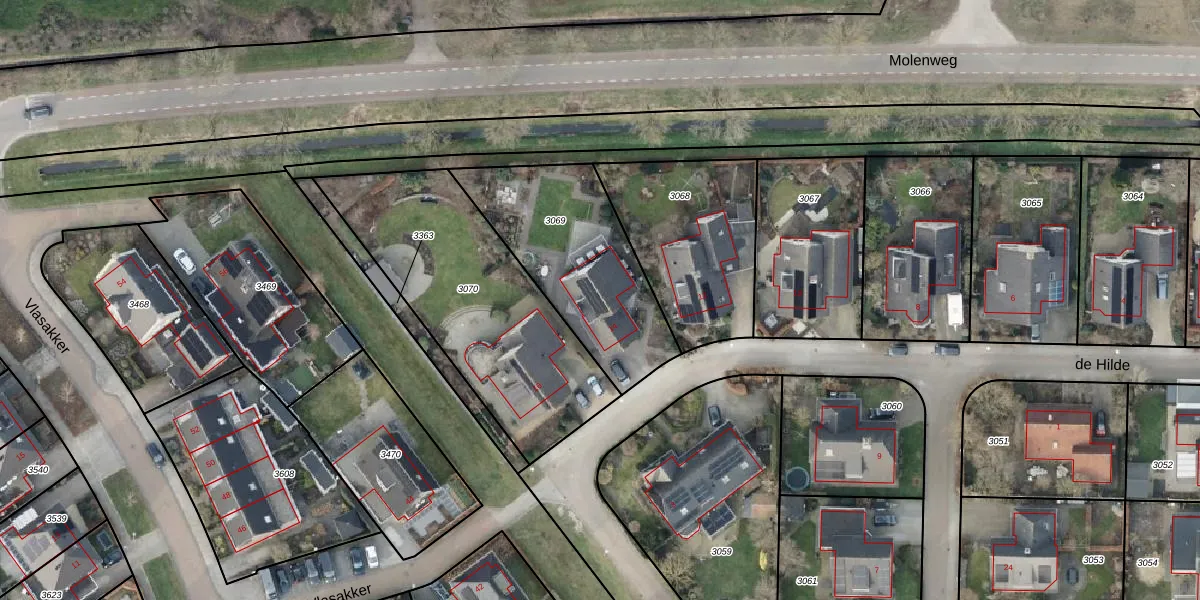 Gebruik de zoekbalk of klik op een perceel voor informatie over de adressen binnen dit perceel.