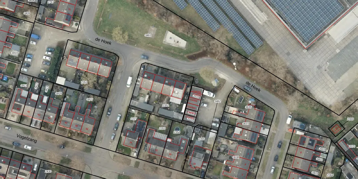 Het perceel waarop de Hoek 13 staat heeft een oppervlakte van 799 m². Dit is een groot perceel. De perceeloppervlakte wordt geregistreerd door het Kadaster. Gedetailleerde informatie over de maten van dit perceel kunt u vinden in het rapport Kadastrale kaart met maatvoering van de Hoek 13.
