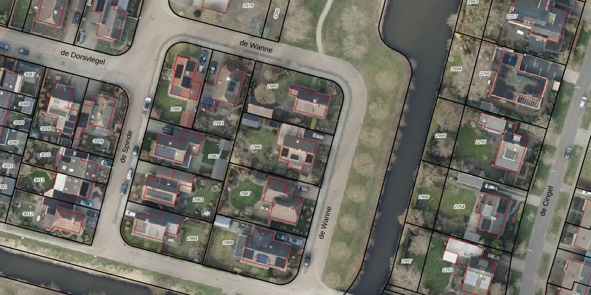 Gebruik de zoekbalk of klik op een perceel voor informatie over de adressen binnen dit perceel.