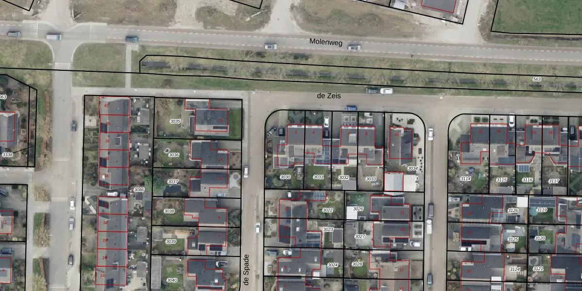 Het perceel waarop de Zeis 2 staat heeft een oppervlakte van 363 m². Dit is een groot perceel. De perceeloppervlakte wordt geregistreerd door het Kadaster. Gedetailleerde informatie over de maten van dit perceel kunt u vinden in het rapport Kadastrale kaart met maatvoering van de Zeis 2.