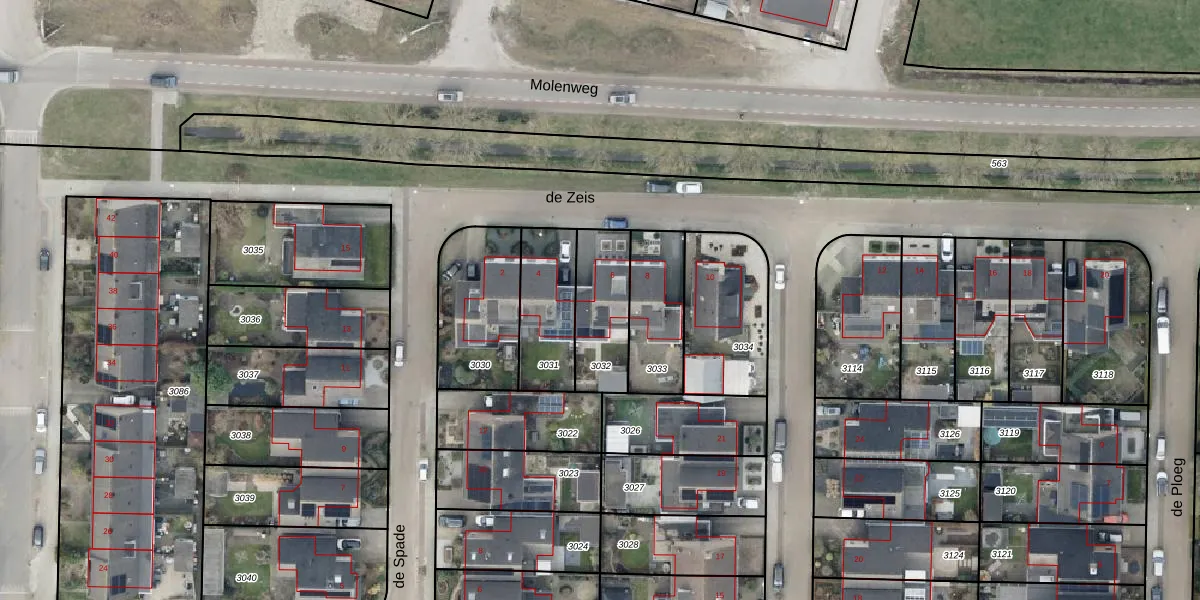 Gebruik de zoekbalk of klik op een perceel voor informatie over de adressen binnen dit perceel.