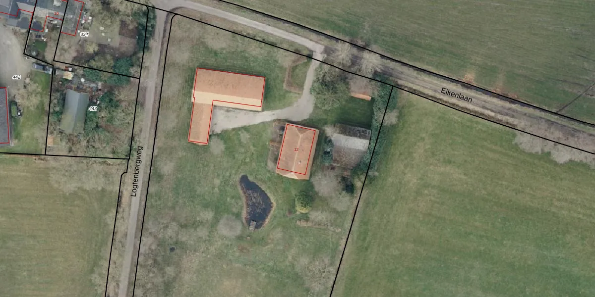 Het perceel waarop Eikenlaan 12 staat heeft een oppervlakte van 1,1 ha. Dit is een zeer groot perceel. De perceeloppervlakte wordt geregistreerd door het Kadaster. Gedetailleerde informatie over de maten van dit perceel kunt u vinden in het rapport Kadastrale kaart met maatvoering van Eikenlaan 12.
