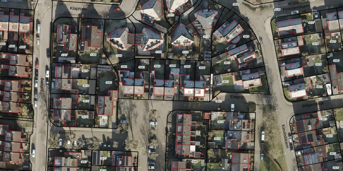 Gebruik de zoekbalk of klik op een perceel voor informatie over de adressen binnen dit perceel.