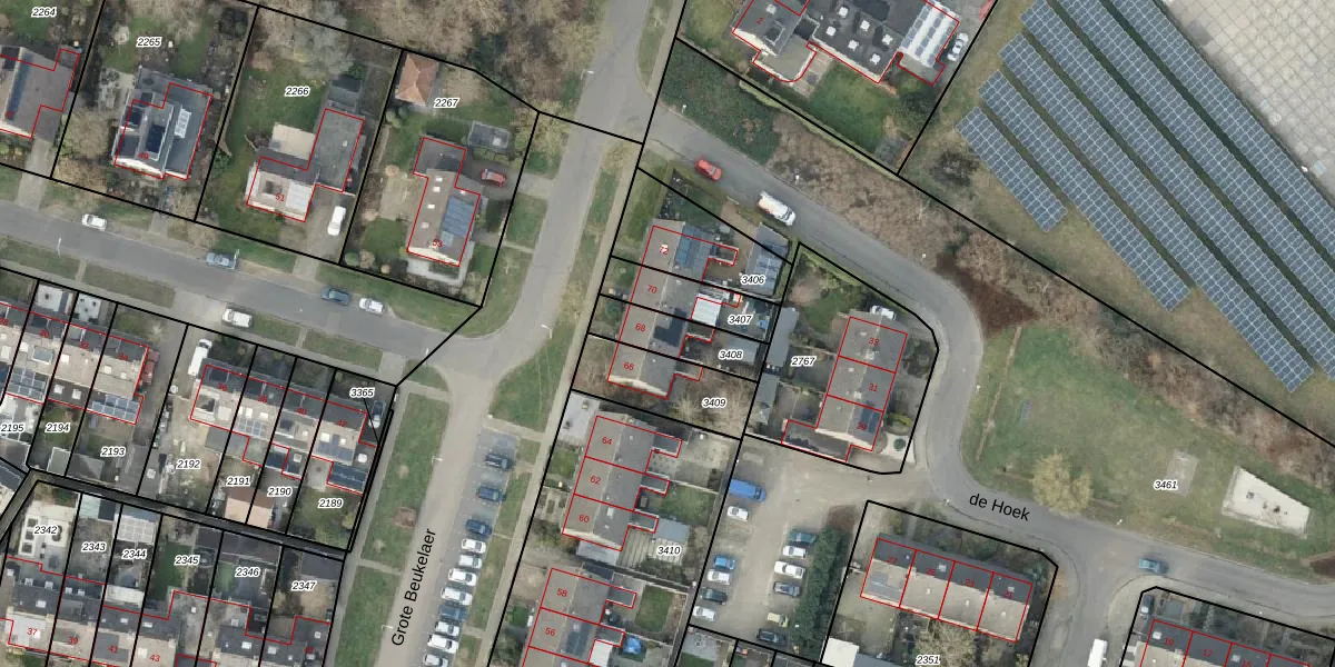 Gebruik de zoekbalk of klik op een perceel voor informatie over de adressen binnen dit perceel.