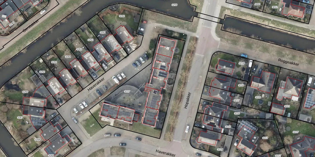 Het perceel waarop Haverakker 22 staat heeft een oppervlakte van 1875 m². Dit is een zeer groot perceel. De perceeloppervlakte wordt geregistreerd door het Kadaster. Gedetailleerde informatie over de maten van dit perceel kunt u vinden in het rapport Kadastrale kaart met maatvoering van Haverakker 22.