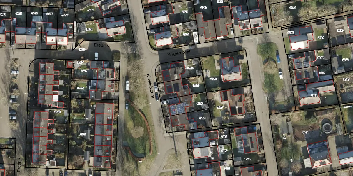 Gebruik de zoekbalk of klik op een perceel voor informatie over de adressen binnen dit perceel.