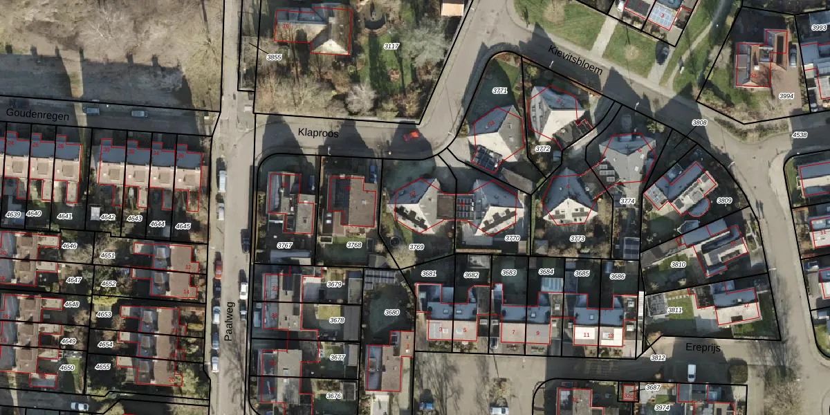 Het perceel waarop Klaproos 57 staat heeft een oppervlakte van 432 m². Dit is een groot perceel. De perceeloppervlakte wordt geregistreerd door het Kadaster. Gedetailleerde informatie over de maten van dit perceel kunt u vinden in het rapport Kadastrale kaart met maatvoering van Klaproos 57.