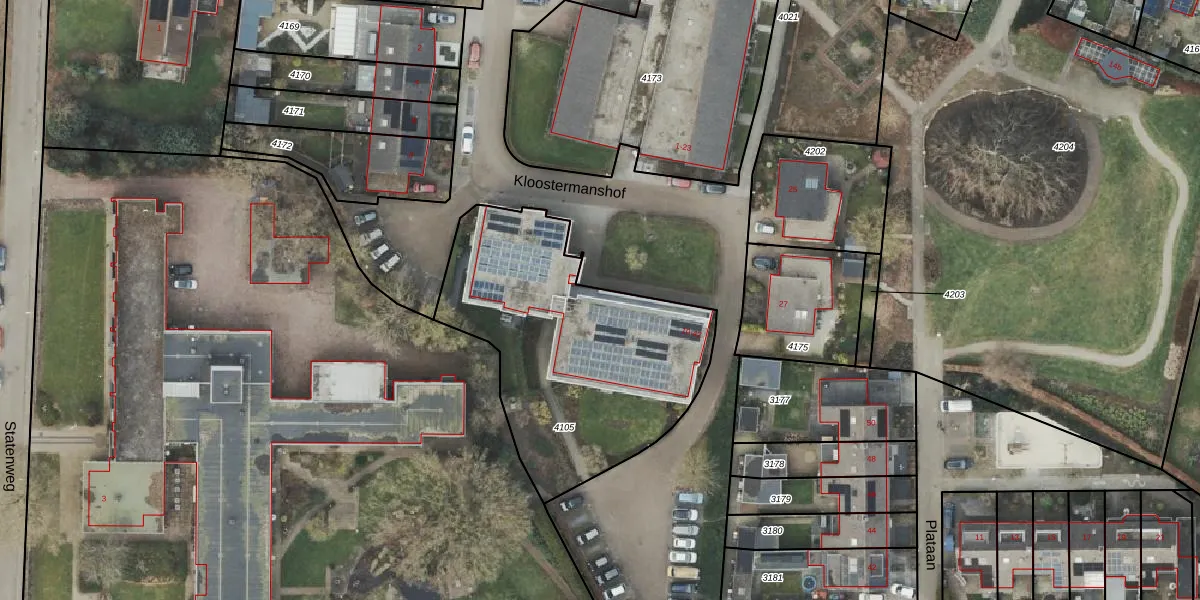 Het perceel waarop Kloostermanshof 24 staat heeft een oppervlakte van 1278 m². Dit is een zeer groot perceel. De perceeloppervlakte wordt geregistreerd door het Kadaster. Gedetailleerde informatie over de maten van dit perceel kunt u vinden in het rapport Kadastrale kaart met maatvoering van Kloostermanshof 24.