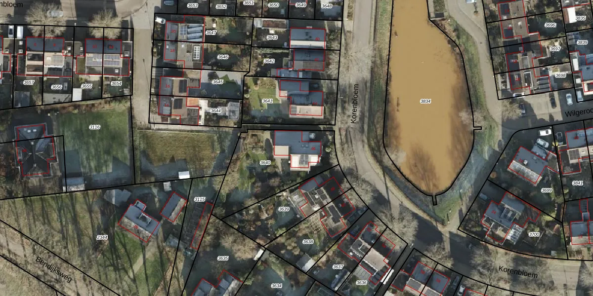 Gebruik de zoekbalk of klik op een perceel voor informatie over de adressen binnen dit perceel.