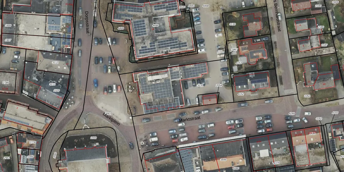 Het perceel waarop Marktplein 8 staat heeft een oppervlakte van 1449 m². Dit is een zeer groot perceel. De perceeloppervlakte wordt geregistreerd door het Kadaster. Gedetailleerde informatie over de maten van dit perceel kunt u vinden in het rapport Kadastrale kaart met maatvoering van Marktplein 8.