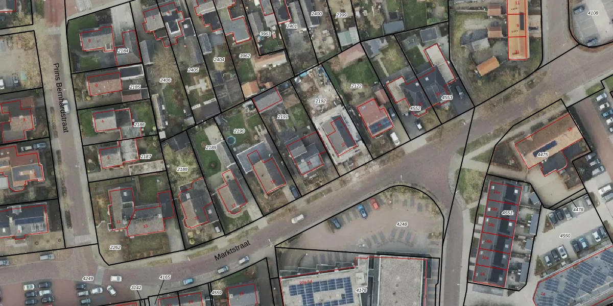 Het perceel waarop Marktstraat 21 staat heeft een oppervlakte van 510 m². Dit is een groot perceel. De perceeloppervlakte wordt geregistreerd door het Kadaster. Gedetailleerde informatie over de maten van dit perceel kunt u vinden in het rapport Kadastrale kaart met maatvoering van Marktstraat 21.