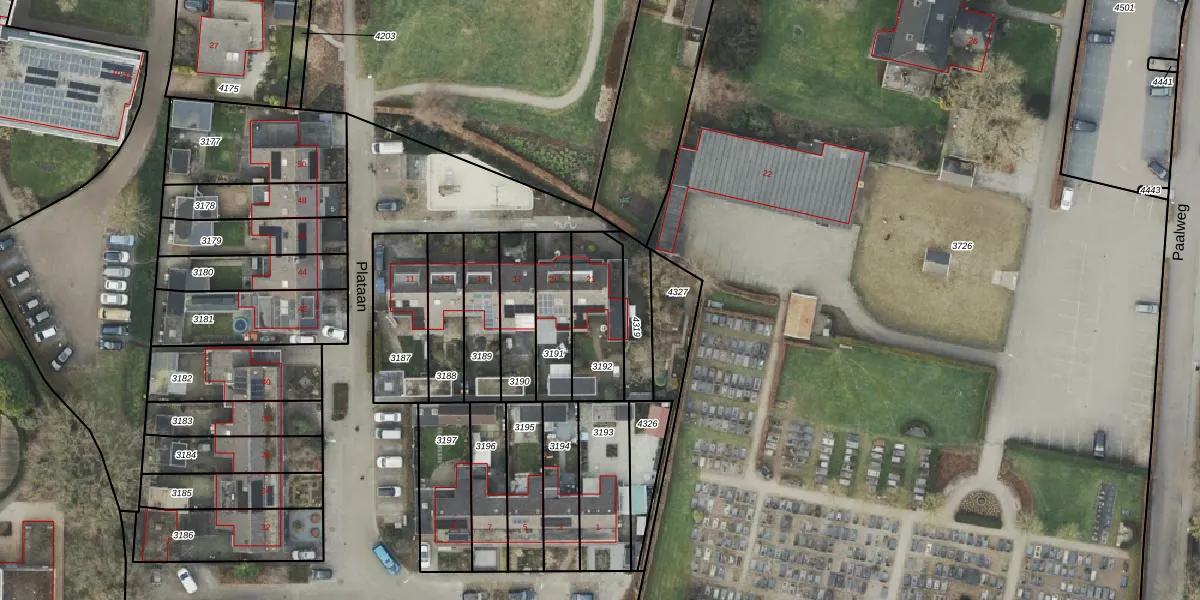 Het perceel waarop Plataan 21 staat heeft een oppervlakte van 242 m². Dit is een middelgroot perceel. De perceeloppervlakte wordt geregistreerd door het Kadaster. Gedetailleerde informatie over de maten van dit perceel kunt u vinden in het rapport Kadastrale kaart met maatvoering van Plataan 21.