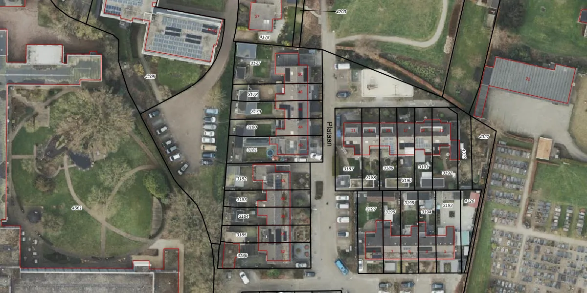 Het perceel waarop Plataan 42 staat heeft een oppervlakte van 295 m². Dit is een middelgroot perceel. De perceeloppervlakte wordt geregistreerd door het Kadaster. Gedetailleerde informatie over de maten van dit perceel kunt u vinden in het rapport Kadastrale kaart met maatvoering van Plataan 42.