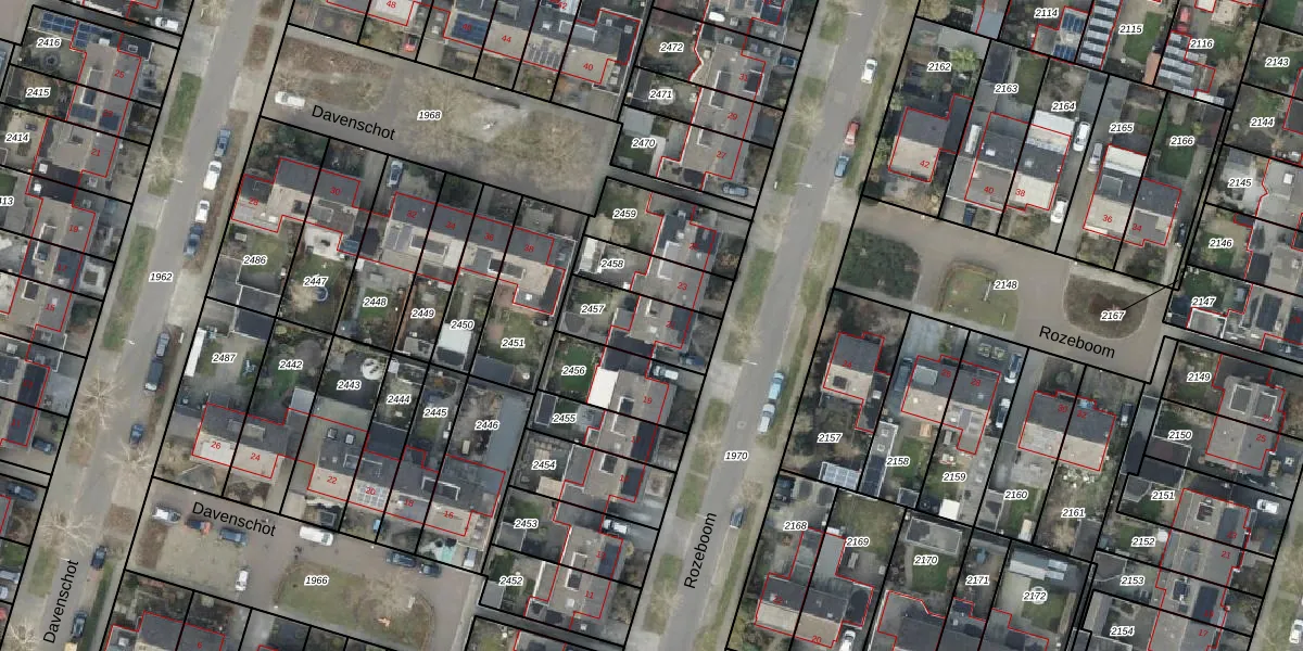 Gebruik de zoekbalk of klik op een perceel voor informatie over de adressen binnen dit perceel.
