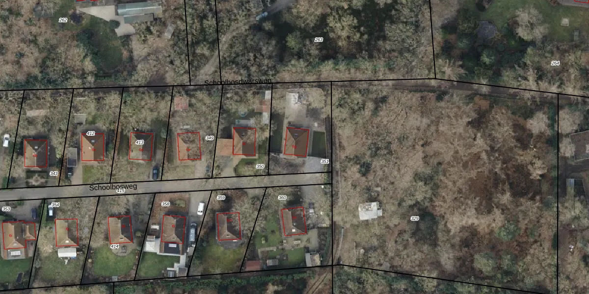 Het perceel waarop Schoolbosweg 6-g staat heeft een oppervlakte van 645 m². Dit is een groot perceel. De perceeloppervlakte wordt geregistreerd door het Kadaster. Gedetailleerde informatie over de maten van dit perceel kunt u vinden in het rapport Kadastrale kaart met maatvoering van Schoolbosweg 6-g.