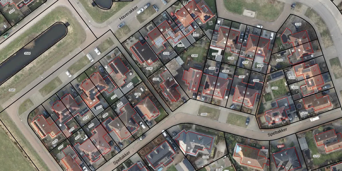 Gebruik de zoekbalk of klik op een perceel voor informatie over de adressen binnen dit perceel.