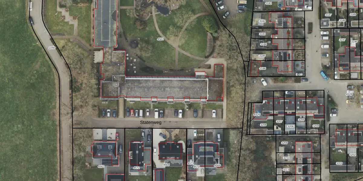 Het perceel waarop Statenweg 3-138 staat heeft een oppervlakte van 1,2 ha. Dit is een zeer groot perceel. De perceeloppervlakte wordt geregistreerd door het Kadaster. Gedetailleerde informatie over de maten van dit perceel kunt u vinden in het rapport Kadastrale kaart met maatvoering van Statenweg 3-138.