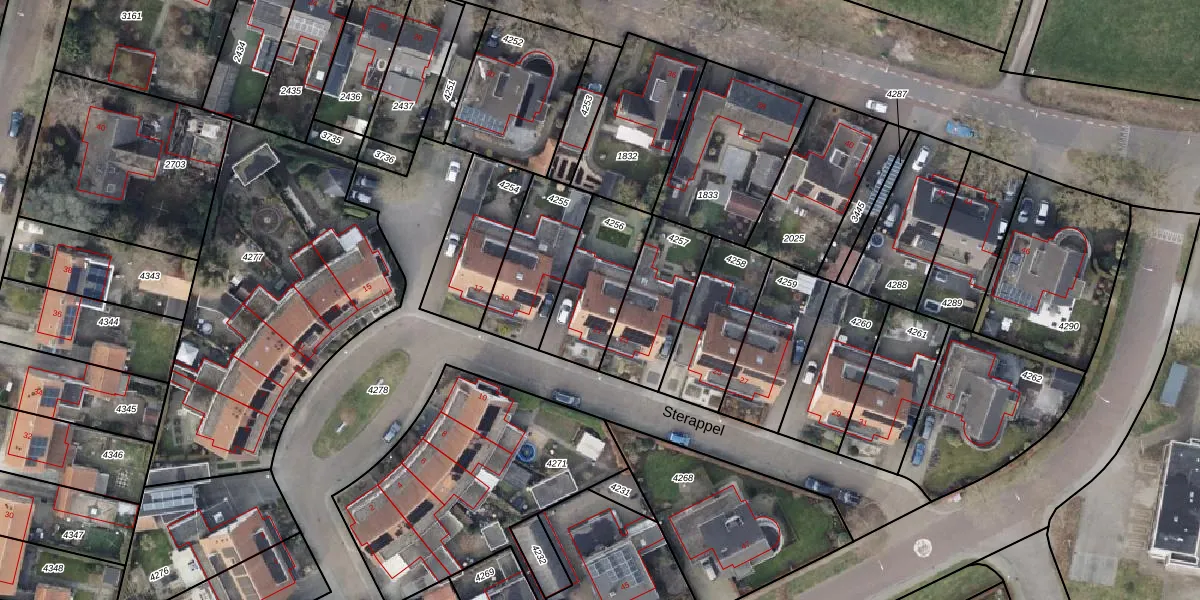 Het perceel waarop Sterappel 21 staat heeft een oppervlakte van 292 m². Dit is een middelgroot perceel. De perceeloppervlakte wordt geregistreerd door het Kadaster. Gedetailleerde informatie over de maten van dit perceel kunt u vinden in het rapport Kadastrale kaart met maatvoering van Sterappel 21.