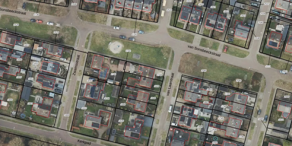 Gebruik de zoekbalk of klik op een perceel voor informatie over de adressen binnen dit perceel.