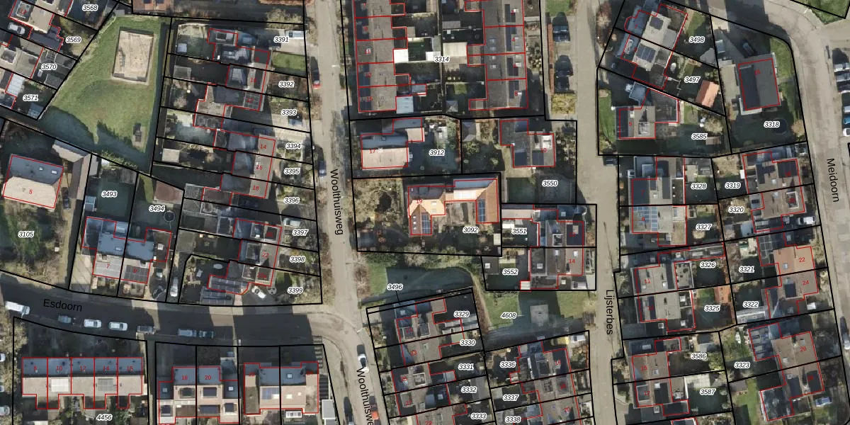 Gebruik de zoekbalk of klik op een perceel voor informatie over de adressen binnen dit perceel.