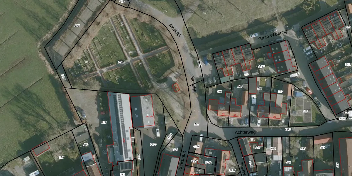 Het perceel waarop Meeldijk 6 staat heeft een oppervlakte van 3155 m². Dit is een zeer groot perceel. De perceeloppervlakte wordt geregistreerd door het Kadaster. Gedetailleerde informatie over de maten van dit perceel kunt u vinden in het rapport Kadastrale kaart met maatvoering van Meeldijk 6.