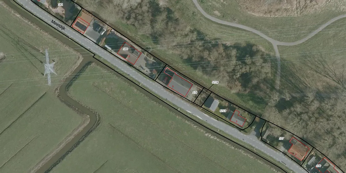 Het perceel waarop Meeldijk 9 staat heeft een oppervlakte van 260 m². Dit is een middelgroot perceel. De perceeloppervlakte wordt geregistreerd door het Kadaster. Gedetailleerde informatie over de maten van dit perceel kunt u vinden in het rapport Kadastrale kaart met maatvoering van Meeldijk 9.